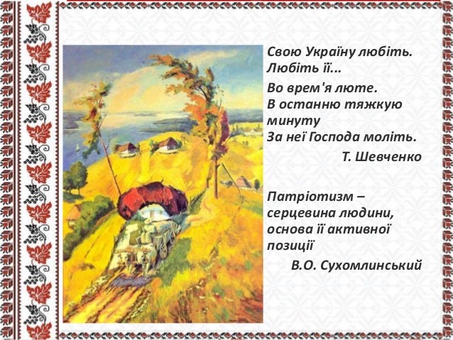Патріотизм (від грецького “патріс”) – це любов до Батьківщини, відданість Вітчизні, народу. Але в умовах українських реалій, коли багато речей викликають у суспільстві негативне ставлення, виховувати справжніх патріотів дуже складно. Чи є сьогодні альтернатива патріотизму? Мабуть, ні. І якщо в суспільстві буде панувати нігілізм, нехтування долею рідної країни, це призведе до бездержавності і ще гіршого життя...
